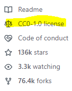 문서, 이미지, 영상물 등과 같은 Non-Software의 경우 보편적으로 CC(Creative Commons) License가 사용되며 GitHub에서도 Open License인 경우 UI로 연동시켜준다. 하지만 상업적 이용불가인 NC(Non-Commercial)는 이전부터 요청이 있었음에도 불구하고 공유정신에 위반되므로 UI로 연동시켜주지는 않는다.