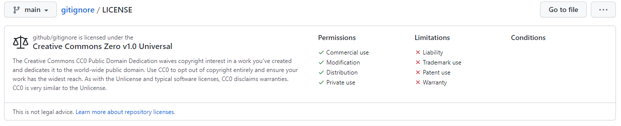 또한 GitHub에서 프리셋으로 지원하지 않는 CC-NC의 경우, 여기에서 자신의 용도에 맞는 license전문을 복사 또는 다운로드 받아 GitHub repository root의 LICENSE.md에 적용시킬 수 있다. 위에서 설명한대로 NC의 경우 GitHub UI에서 인식하지 않는다.